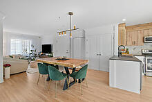 Dès l'entrée, vous serez charmé par l'aire de vie à concept ouvert, baignée de lumière naturelle et agrémentée de plafonds de 9 pieds, créant une ambiance conviviale et chaleureuse.
